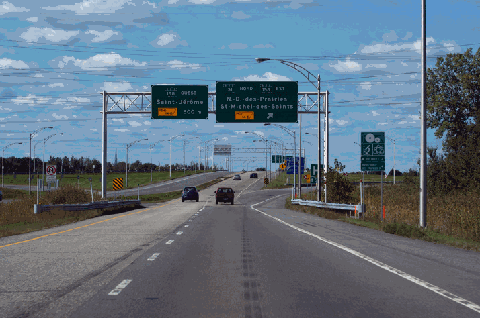 Near the northern terminus, the existing cloverleaf interchange at EXIT 14 (QC 158) should be studied for possible improvements, particularly if the MTQ revives long-abandoned plans to extend A-50 (Guy Lafleur Autoroute) east from Mirabel to Joliette.